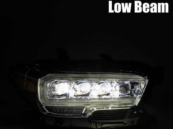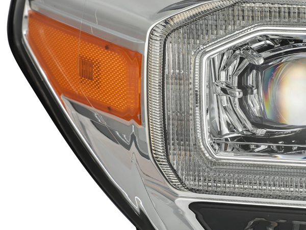 Our Toyota Tacoma NOVA-Series projector headlights come with chrome, black and midnight black housing. The chrome housing gives your truck a stock housing look and match your truck if you have a lot of chrome accessories. On the other hand, the black housing gives your truck a sporty look and easily match with any color truck and front grill. Above all, the jet black housing and mid-night black housing (all black housing with glossy finish) are our special designed housing that has the glossy look mixed with the black paint, and it will give your truck a sporty and luxury look at the same time. Read this article to learn more detail about our headlights color housing.