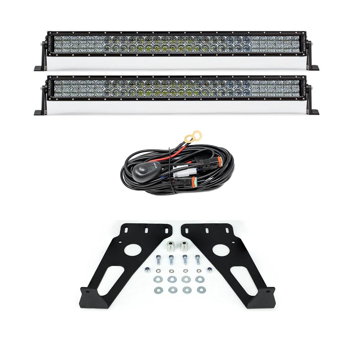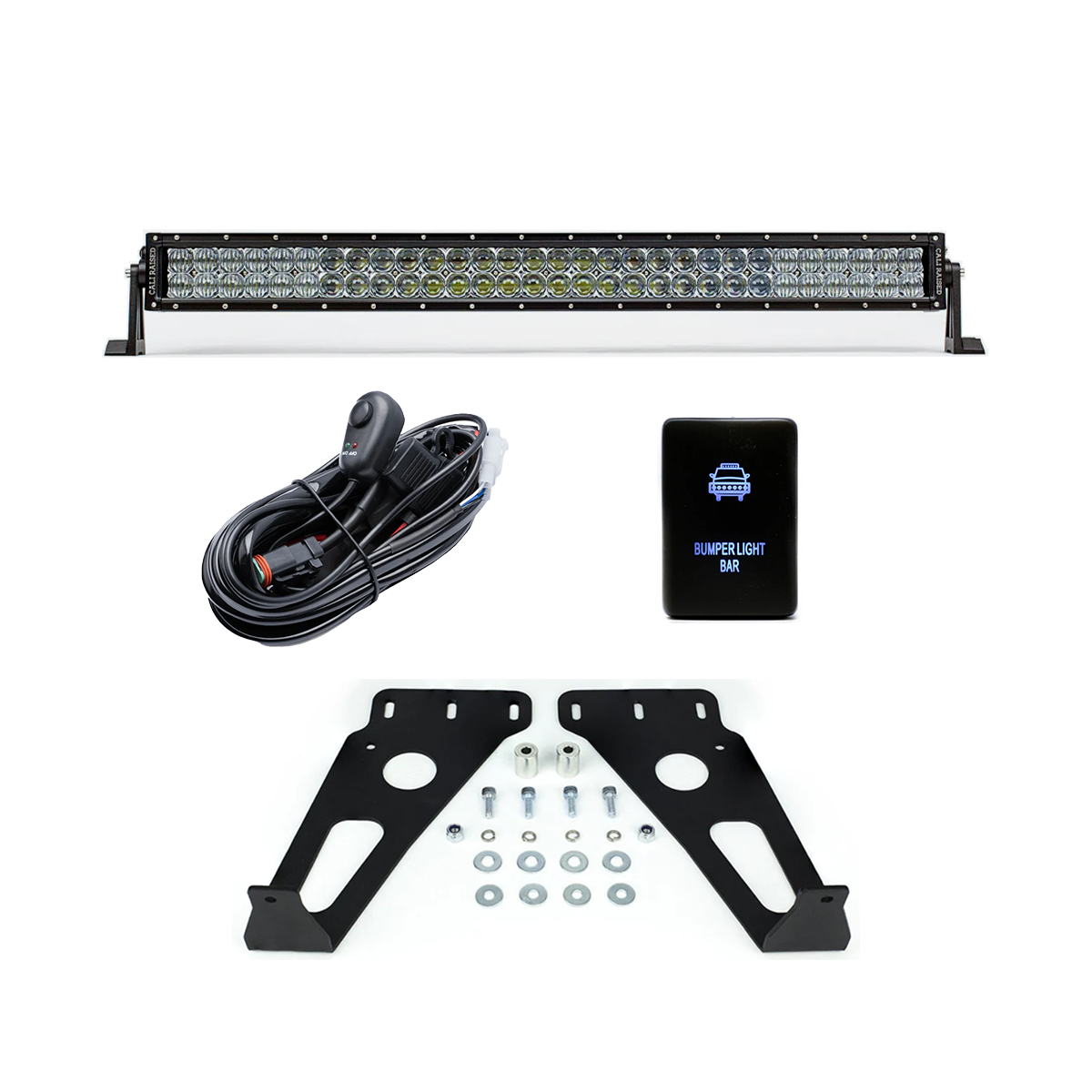 Ready to go all in? This kit includes 2014-2024 Toyota 4Runner Hidden Light Bar Brackets, 32" Dual Row LED Bar, (Spot or Combo Beam), and a wiring harness. See the option to add a small OEM Switch! This custom-designed and laser-cut bracket will hold your 32” lower bumper light bar securely on the 2014-2024 Toyota 4Runner. Proudly engineered and manufactured in the USA, on or off the trail, this kit is robust. To defend against corrosion, the brackets are professionally powder-coated in a durable black semi-gloss finish.