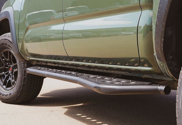 2005-2023 Toyota Tacoma Step Edition Rock Sliders - No Kick Out // Powder Coat // RAW // Double Cab Long Bed