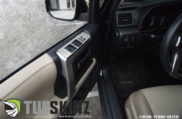 Add a new exterior look to your Toyota 4Runner by installing TUFSKINZ Side Door Control Accents. This kit adds style and protection to your vehicle and is fittingly positioned on each door switch.