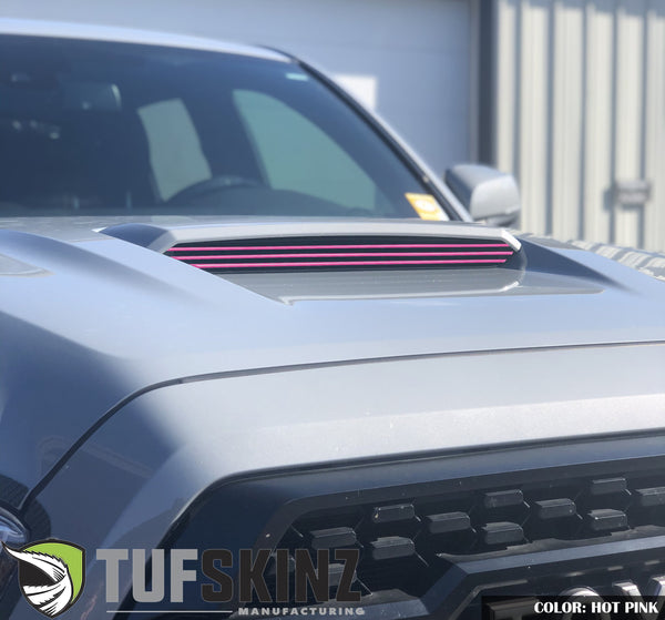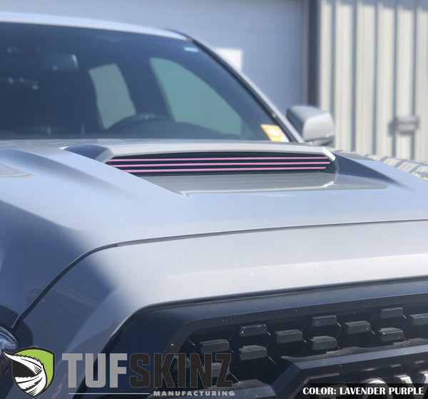 Add a new exterior look to your Toyota Tacoma by installing TUFSKINZ Inner Hood Scoop Line Accents. These pieces add style and protection to your vehicle and are fittingly positioned on the 3 lines inside the hood scoop.