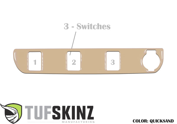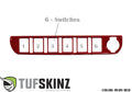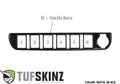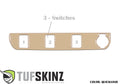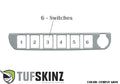 TUFSKINZ Center Dash Switch Panel Overlay is designed to fit over the switch trim of your model. Prep and installation can simply be completed within 10 minutes.